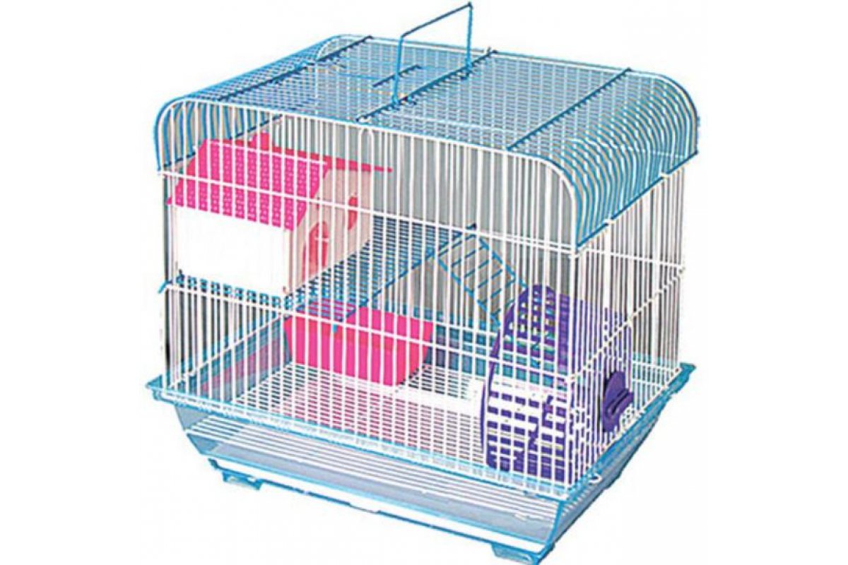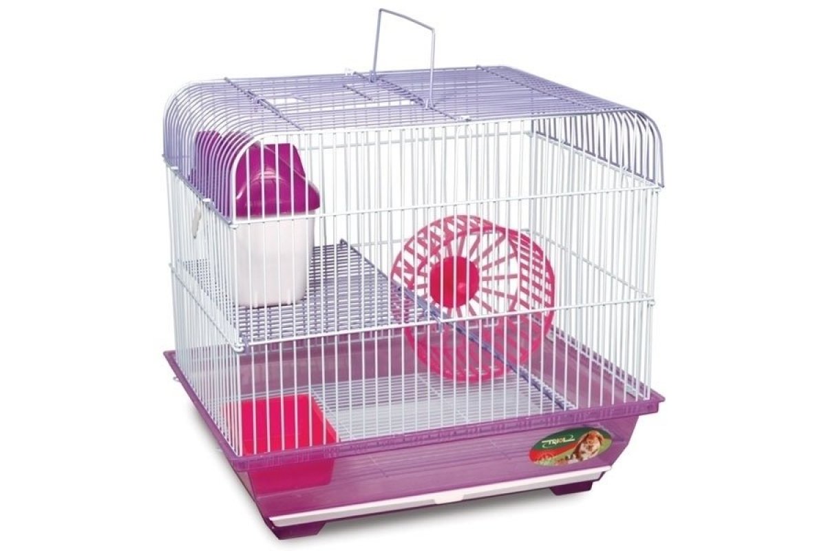 В комплект клетки входят пластиковая миска, колесо, домик, металлическая полочка и металлическая лесенка. Благодаря выдвижному поддону облегчается уборка клетки, предусмотрена съемная решетка на дне клетки.