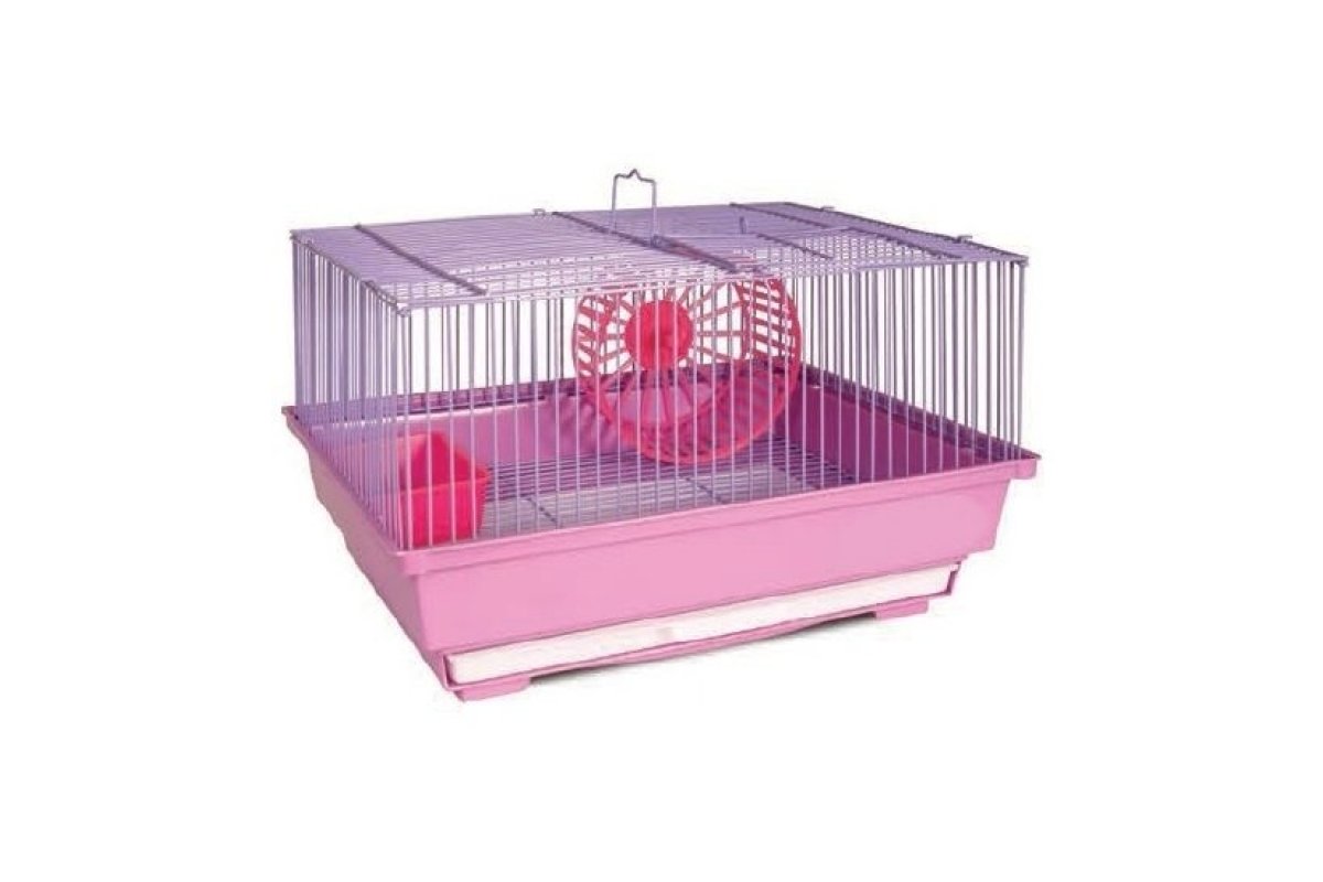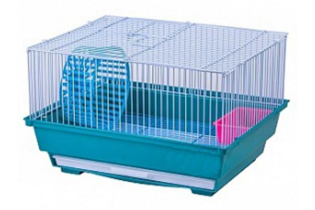 В комплект входят пластиковая миска для вкусных лакомств и кормов, а также колесо для физической активности. Чтобы уборка внутри не занимала много времени, предусмотрен выдвижной поддон и съемная решетка на дне.