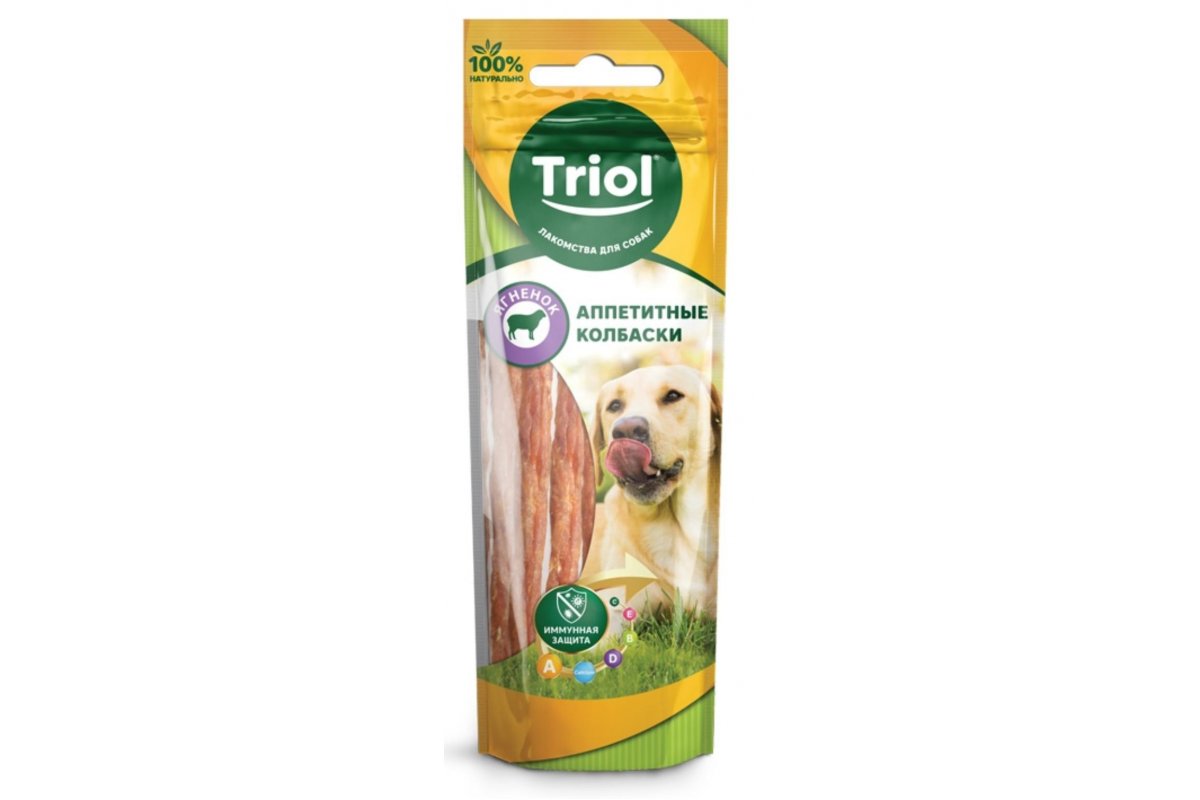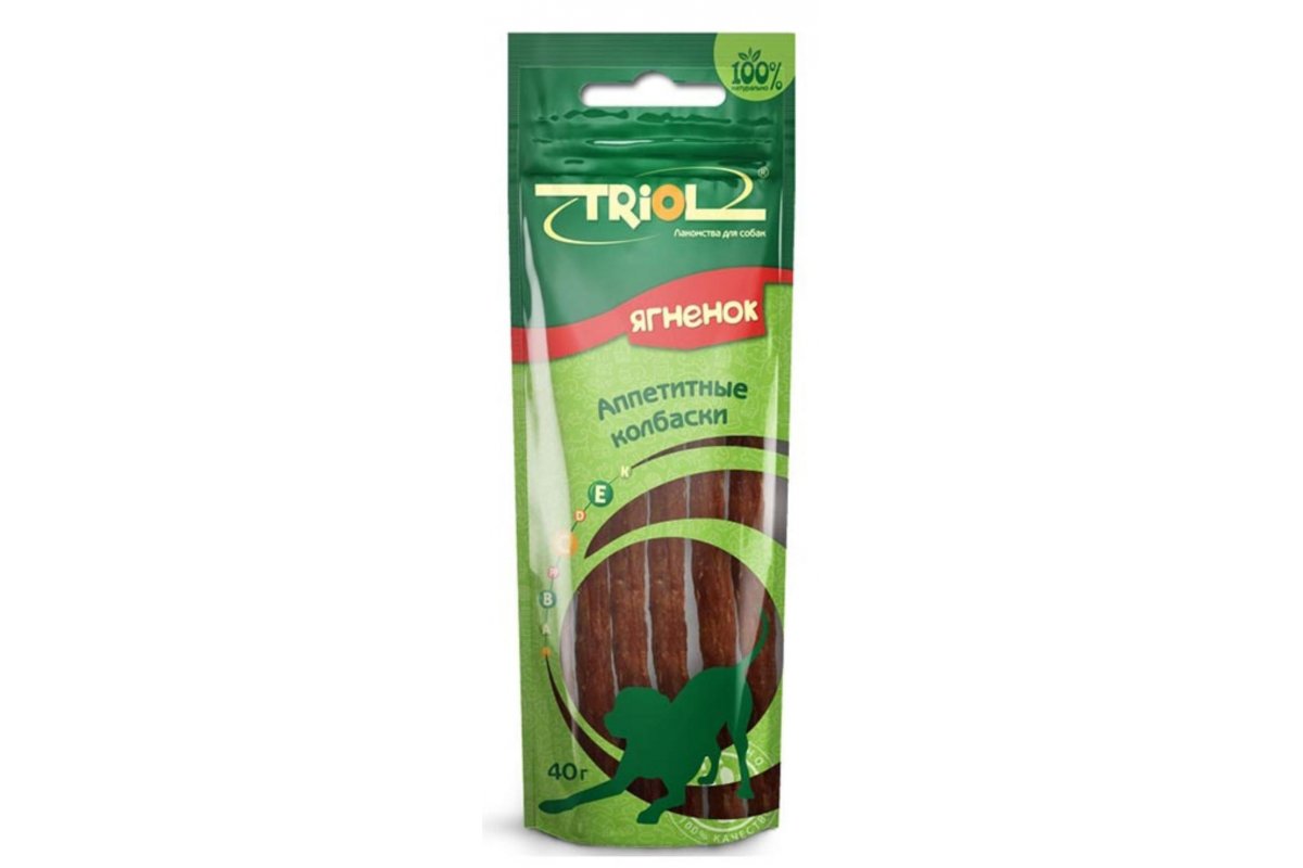 Triol PT04 Колбаски из ягненка, 40 г - это аппетитное лакомство для собак, обогащенное комплексом из витаминов A, E, D3 и L-карнитина.