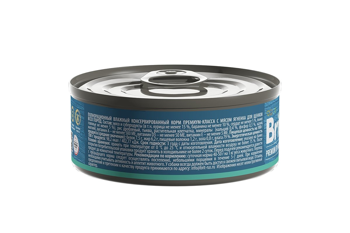 мясо и субпродукты (в т.ч. курица не менее 15%, баранина не менее 10%, сердце не менее 5%, вымя говяжье 5%), рис дробленый, тыква, растительная клетчатка, минералы (кальций 0,4%, фосфор 0,3%, калий, магний), витамин А – не менее 500МЕ, витамин D3 – не менее 50ME, витамин Е – не менее 5МЕ.