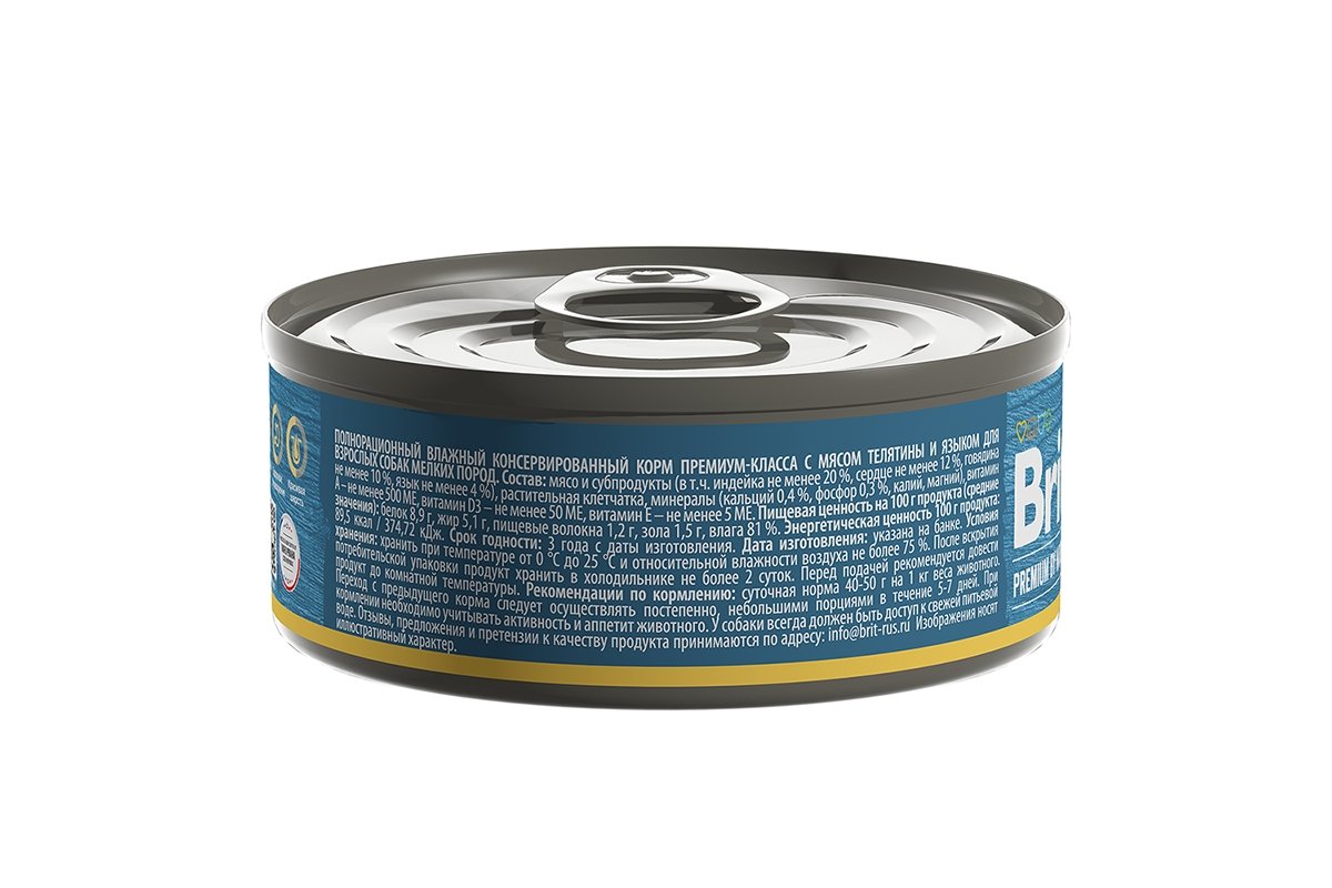 мясо и субпродукты (в т.ч. индейка не менее 20%, сердце не менее 12%, говядина не менее 10%, язык не менее 4%), растительная клетчатка, минералы (кальций 0,4%, фосфор 0,3%, калий, магний), витамин А – не менее 500МЕ, витамин D3 – не менее 50ME, витамин Е – не менее 5МЕ.