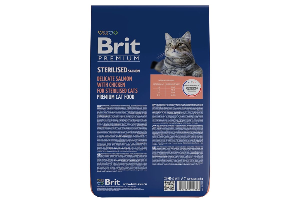 Сухой корм Brit Premium Cat Sterilised Salmon, Chiken можно купить в интернет-магазине зоотоваров Дай лапу.