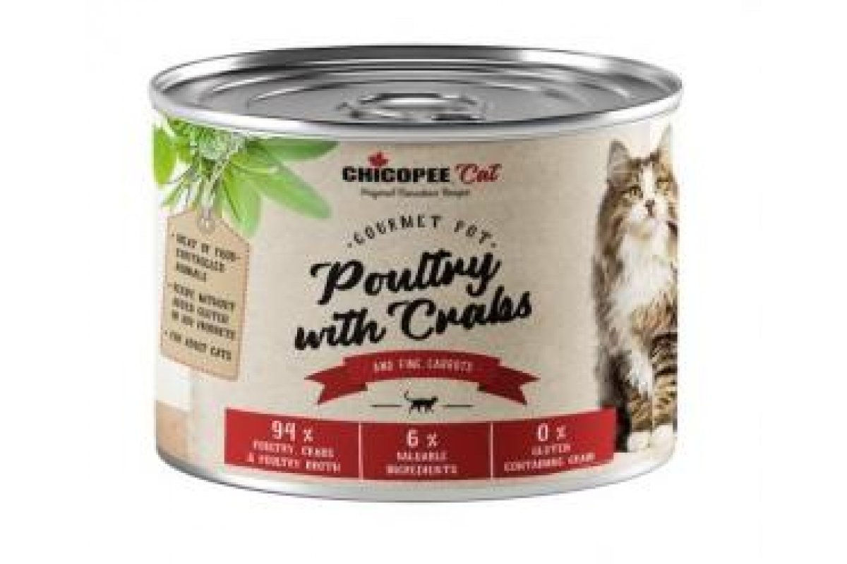 Chicopee Adult Cat (Паштет с домашней птицей и крабами) - с мясной составляющей до 90% (мясо, субпродукты, а также мясной бульон) и обогащенные, множеством натуральных и ценных ингредиентов животного и растительного происхождения.