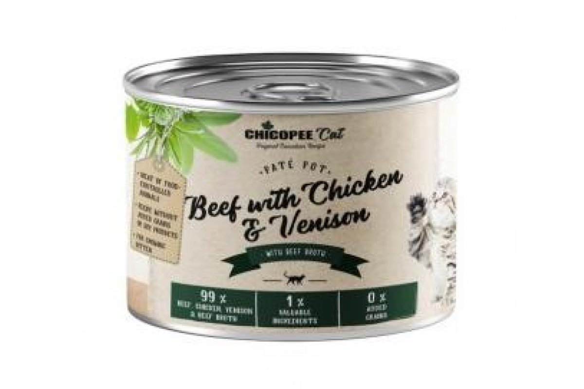 Chicopee Kitten (Паштет с говядиной, курицей и олениной) - с мясной составляющей до 90% (мясо, субпродукты, а также мясной бульон) и обогащенные, множеством натуральных и ценных ингредиентов животного и растительного происхождения.