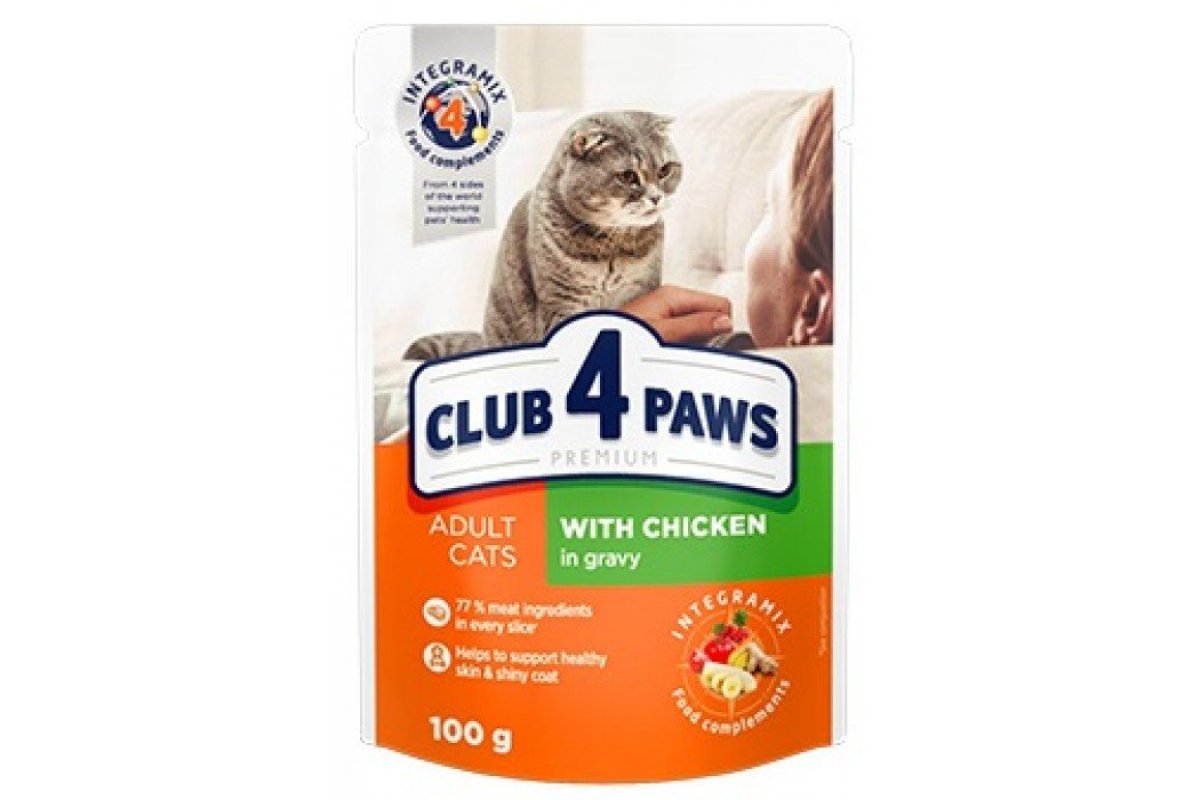 Club 4 Paws Premium для кошек с курицей в соусе - это полнорационный консервированный корм для взрослых кошек. Влажный премиум-рацион содержит 77% мяса и мясных ингредиентов в каждом кусочке и аппетитный соус прекрасно нравятся взрослым кошкам.
