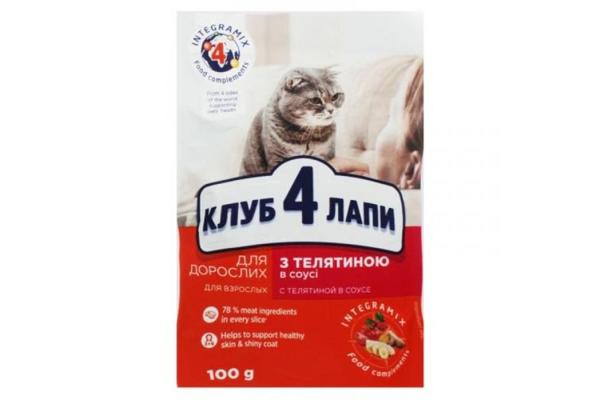 Описание Club 4 Paws для кошек с телятиной в соусе