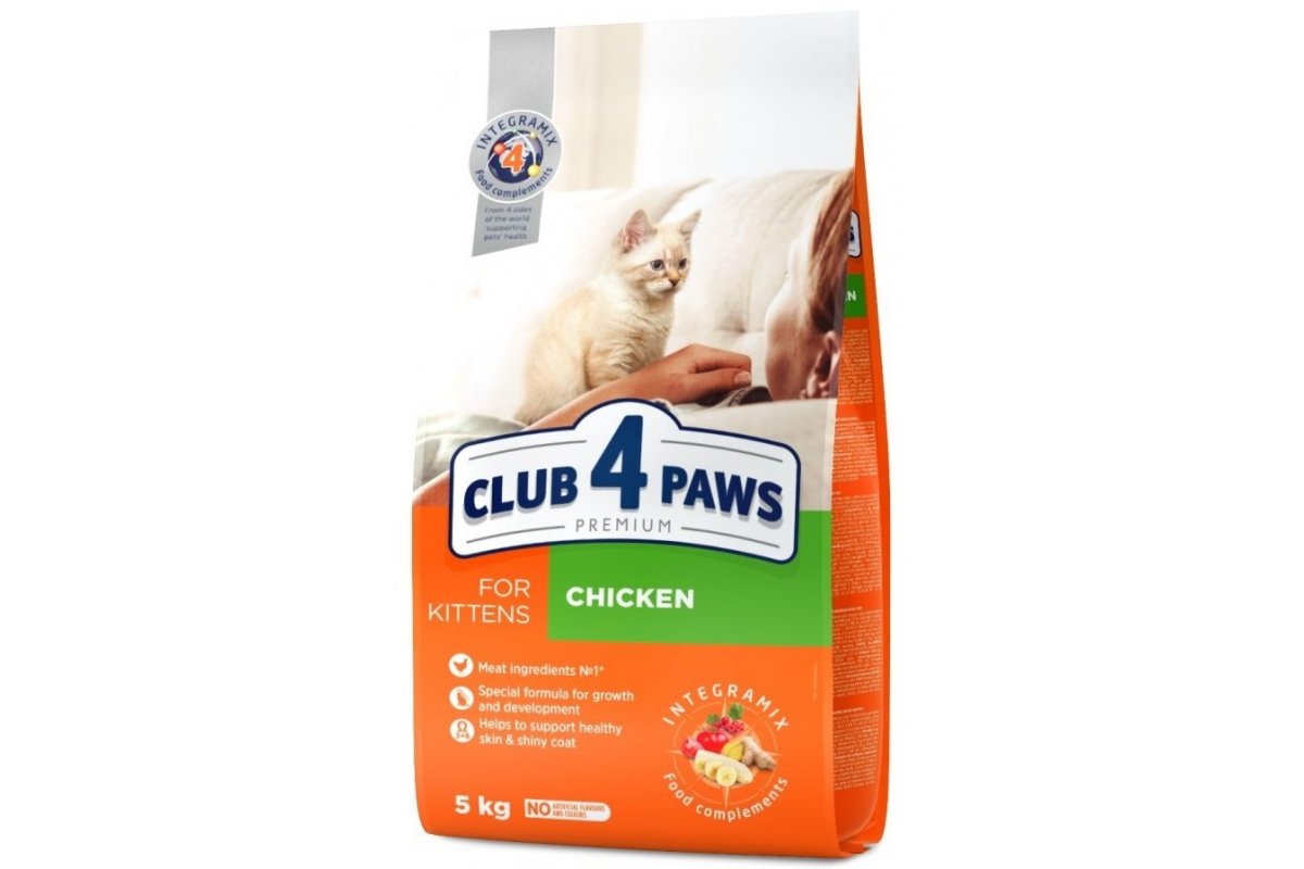 Сухой премиум-рацион для котят в первые 12 месяцев жизни со вкусом курицы. Баланс фосфора, кальция и витамина D способствует формированию здоровых костей и суставов котенка. Комплекс ненасыщенных жирных кислот Омега 3 + Омега 6 поддерживает кожу здоровой, а шерсть блестящей. Рацион обогащен формулой INTEGRAMIX для общей поддержки здоровья и иммунитета любимца. Club 4 Paws Premium для котят "Курица" не содержит искусственных ароматизаторов и красителей.