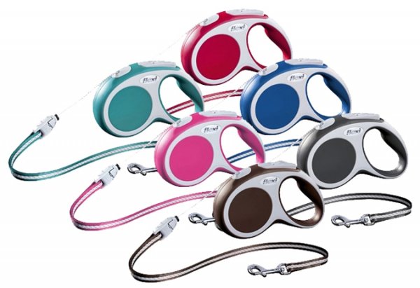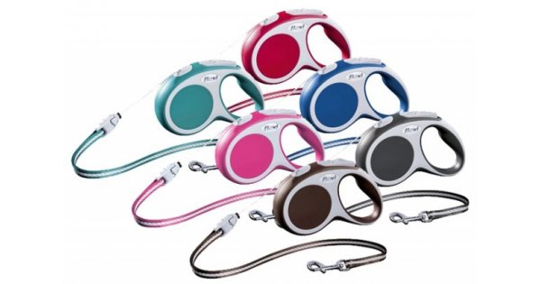 Для собак весом до 15 кг; ременной поводок 5 м.