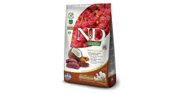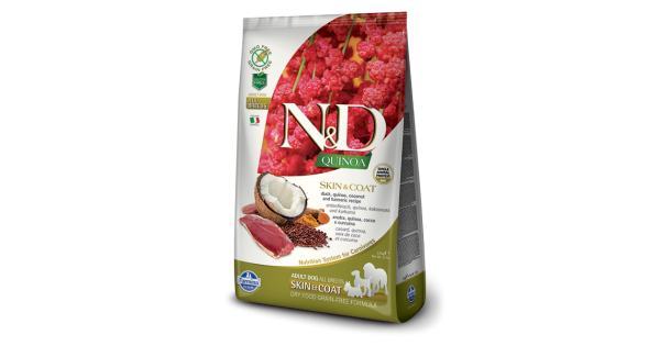 Беззерновой корм, утка, киноа, кокос и куркума.