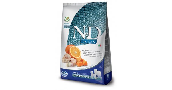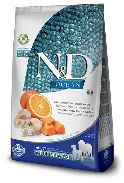 Для средних и крупных пород, низкозерновой, треска, апельсин.