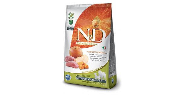 Для средних и крупных пород, беззерновой, тыква, кабан, яблоко.