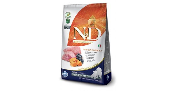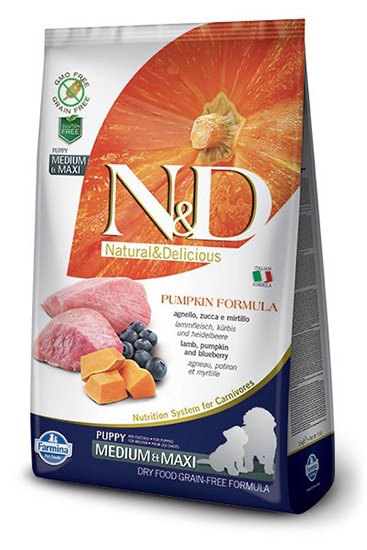 Для щенков средних и крупных пород, беззерновой, тыква, ягненок, черника.