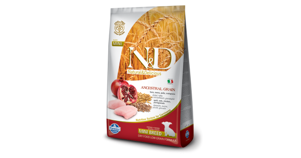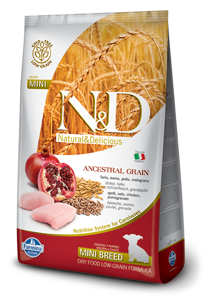 Для щенков, беременных и кормящих сук мелких пород, низкозерновой, курица и гранат.