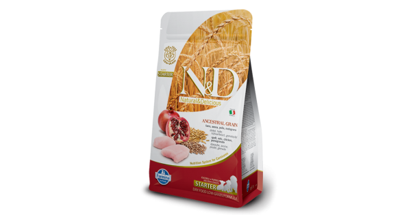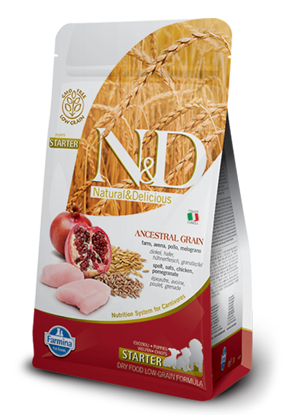 Для щенков от отъема до 2 месяцев, низкозерновой, курица и гранат.