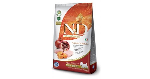 Для мелких пород, беззерновой, тыква, курица, гранат.