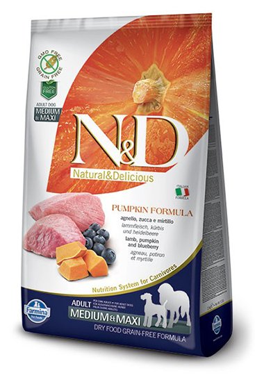 Для средних и крупных пород, беззерновой, тыква, ягненок, черника.
