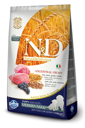 Для щенков средних и крупных пород, низкозерновой, ягненок и черника.
