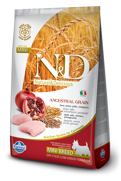 Для взрослых собак мелких пород, низкозерновой, курица и гранат.