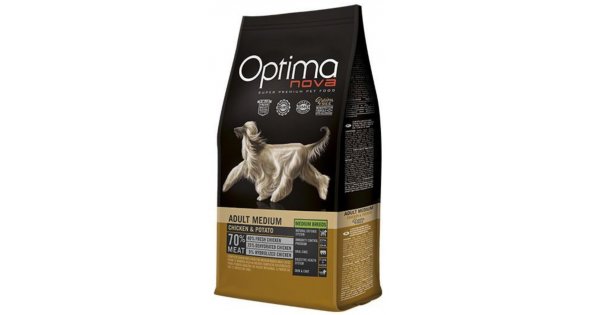 Беззерновой корм для собак средних пород, курица и картофель.