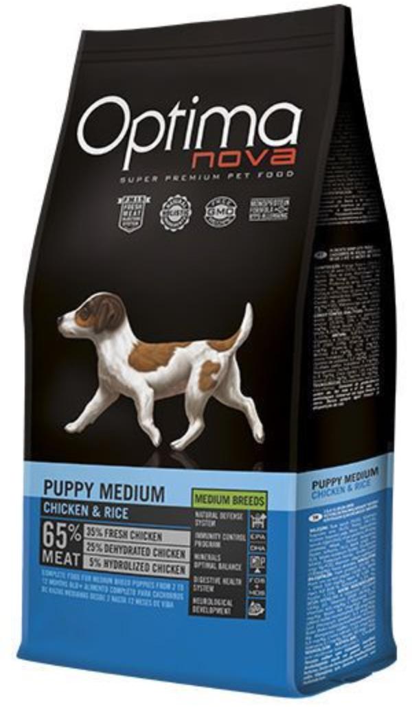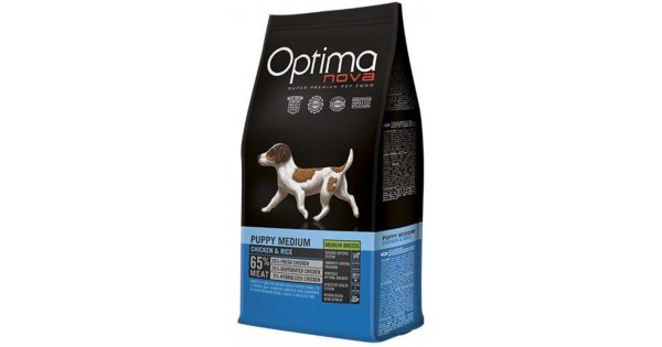 Сухой корм для щенков средних пород, с курицей и рисом.