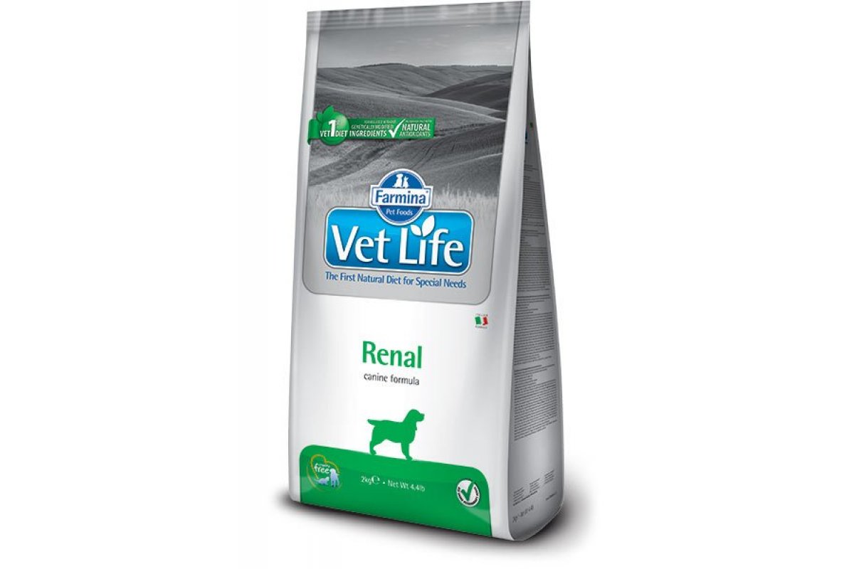 Farmina Vet Life Renal содержит ограниченное количество белков, фосфора и натрия для снижения метаболизма азота; способствует снижению гиперфосфатемии и тормозит развитие гиперпаратиреидоза. Способствует контролю системной гипертензии (на начальной стадии сердечной недостаточности). Клинические тесты показали, что Vet Life Renal улучшает качество жизни собак, страдающих почечной недостаточностью и на начальных стадиях сердечной недостаточности.