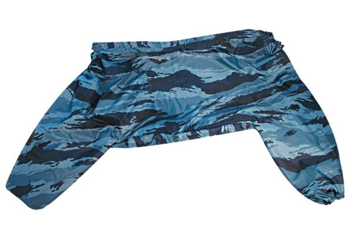 Изделие надежно фиксируется при помощи липучки на спине, ширина горловины регулируется при помощи завязки, а на штанинах предусмотрены удобные резинки, препятствующие попаданию грязи и влаги снизу.