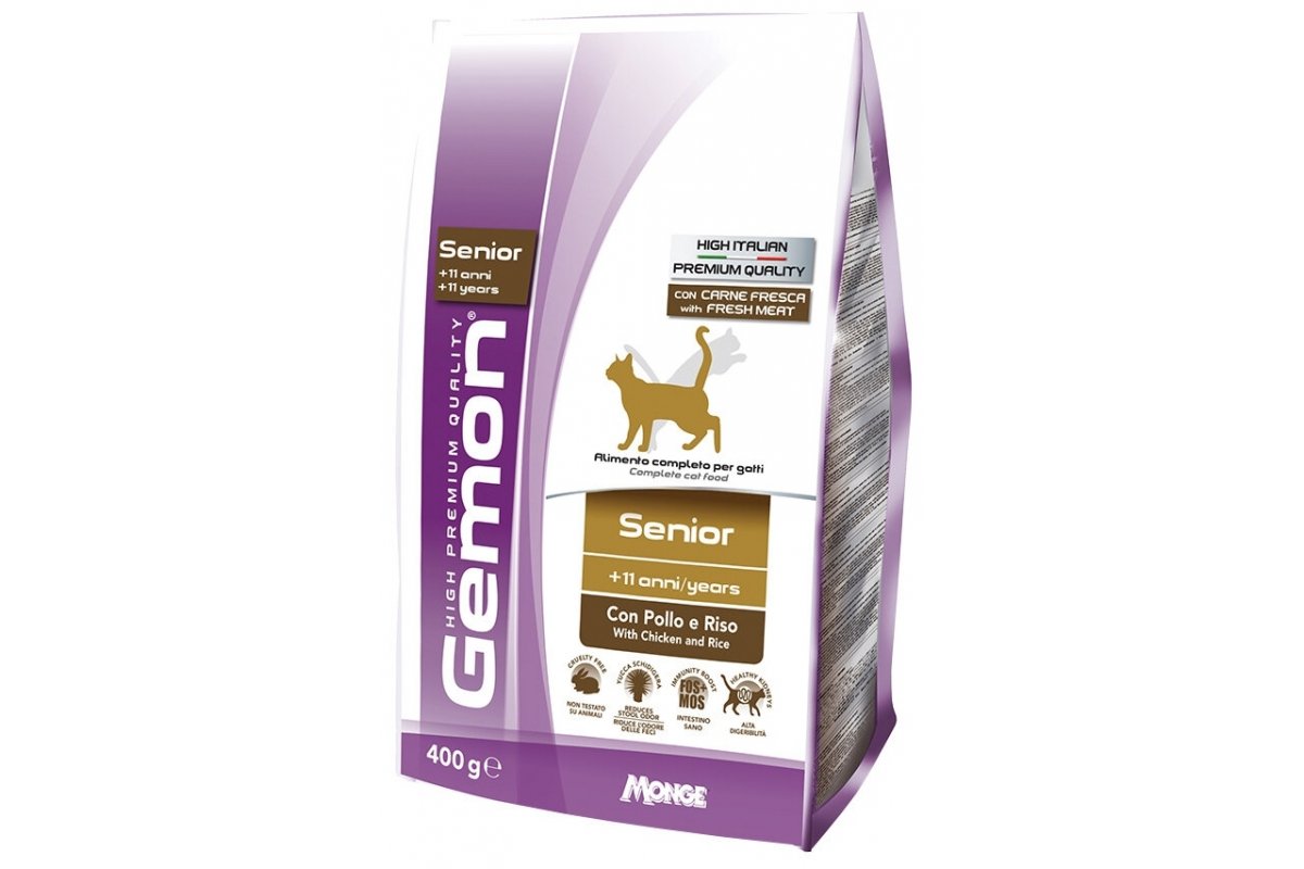 Gemon Cat Senior (Курица и рис) - это полноценный сухой корм с курицей и рисом для пожилых кошек с 11 лет.