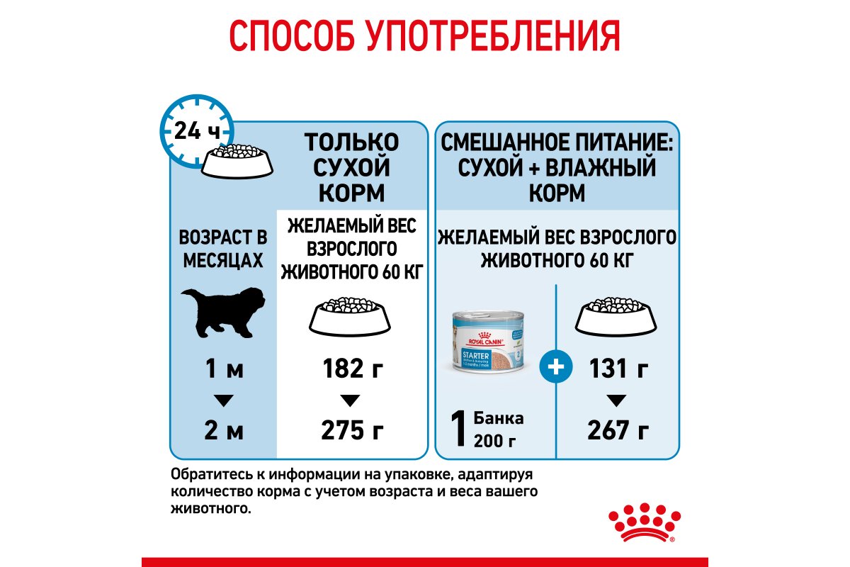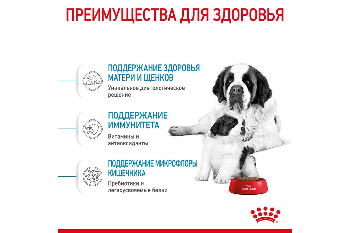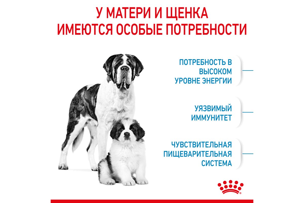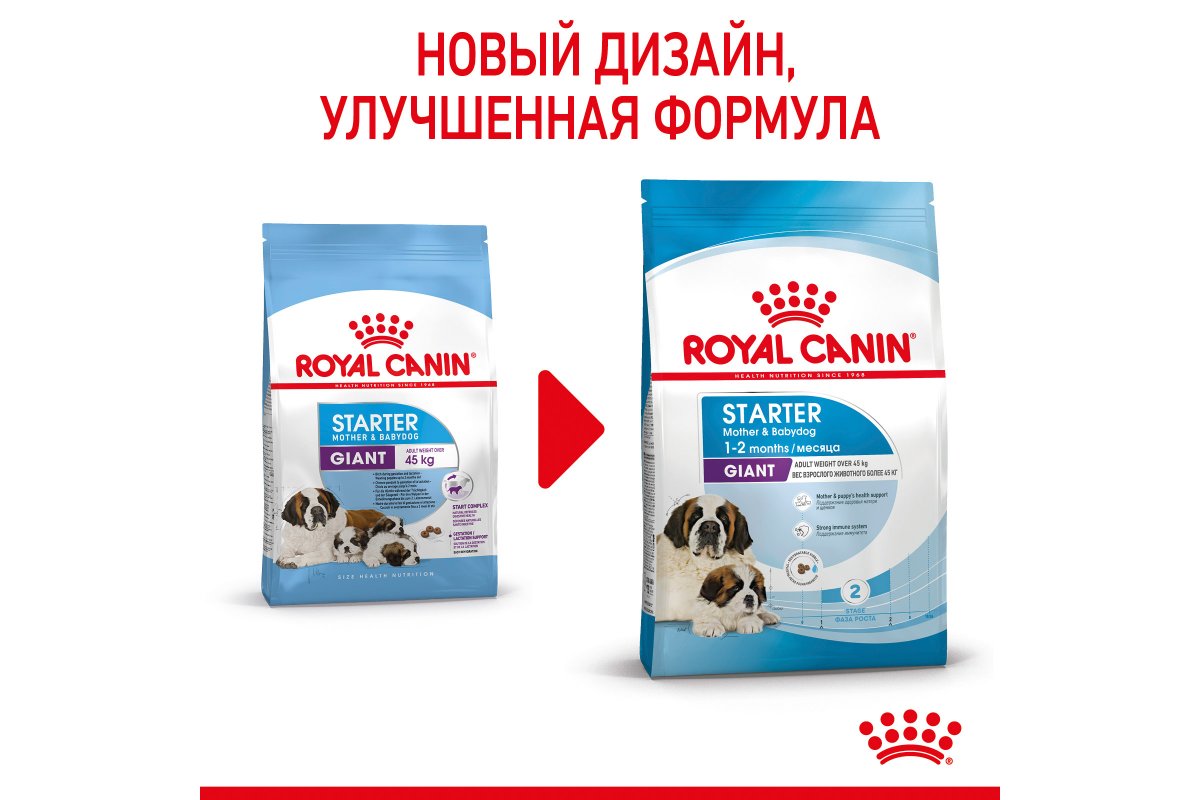 ROYAL CANIN® Giant Starter Mother&Babydog разработан специально для сук весом свыше 45 кг в период беременности и лактации и для их потомства.