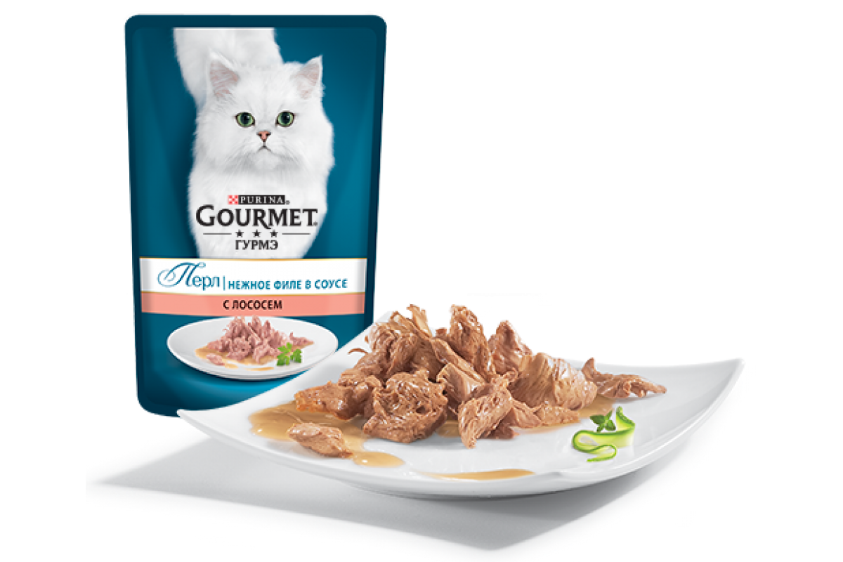 Gourmet Perle (с лососем в подливке) - это пауч, для взрослых кошек (в возрасте от 1 до 7 лет) с нормальным уровнем активности.