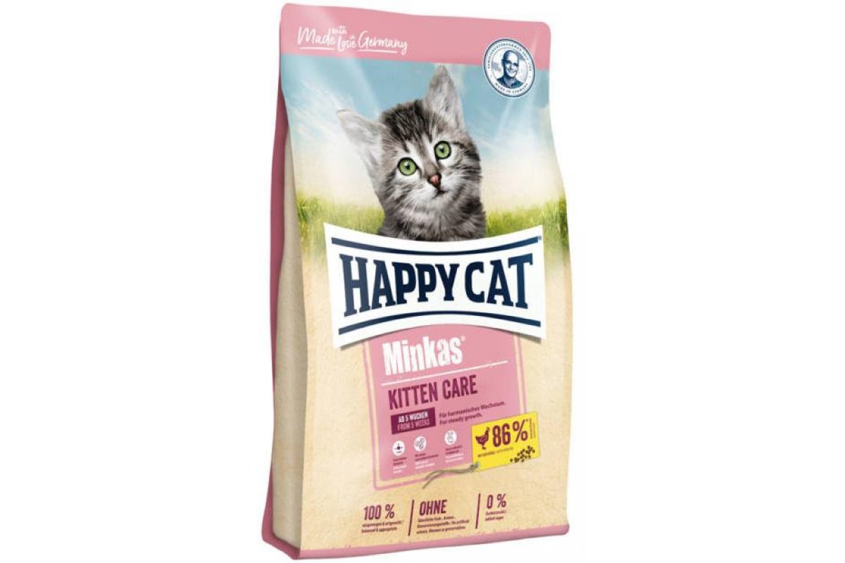 Happy Cat Minkas Kitten - это для котят начиная с 4-й недели жизни и беременных и кормящих кошек. Благодаря ценным белкам из мяса птицы,высококачественным злаковым составляющим и отсутствию сои этот продукт нравится кошкам и легко усваивается.