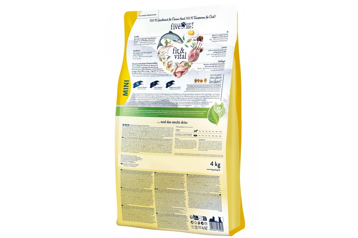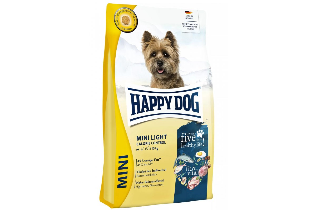 Happy Dog fit & vital Mini Light - это низкокалорийный сбалансированный корм для маленьких собак с небольшим избыточным весом или желающих поддерживать свой вес, подходит для кастрированных питомцев