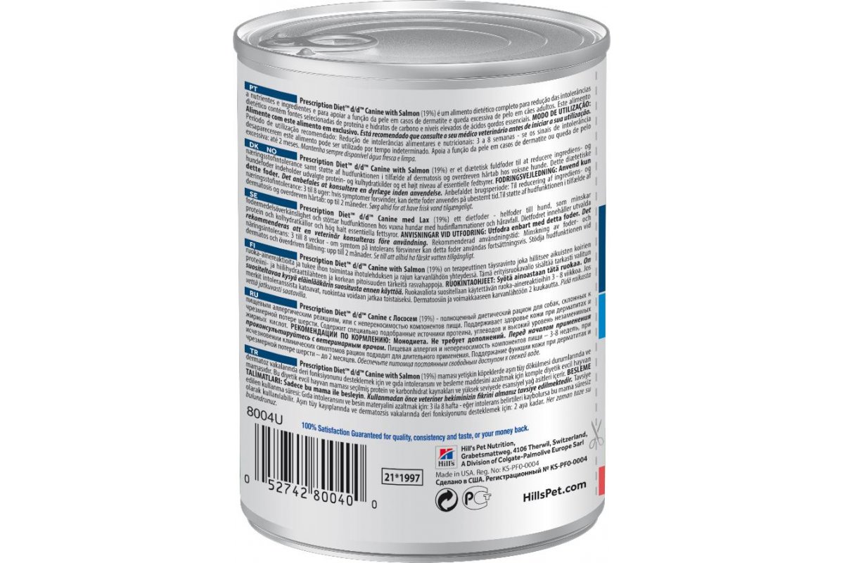 Prescription Diet™ Canine d/d™ Salmon разработан для поддержания здоровья собак при кожных реакциях и рвоте/диарее в случае аллергии.