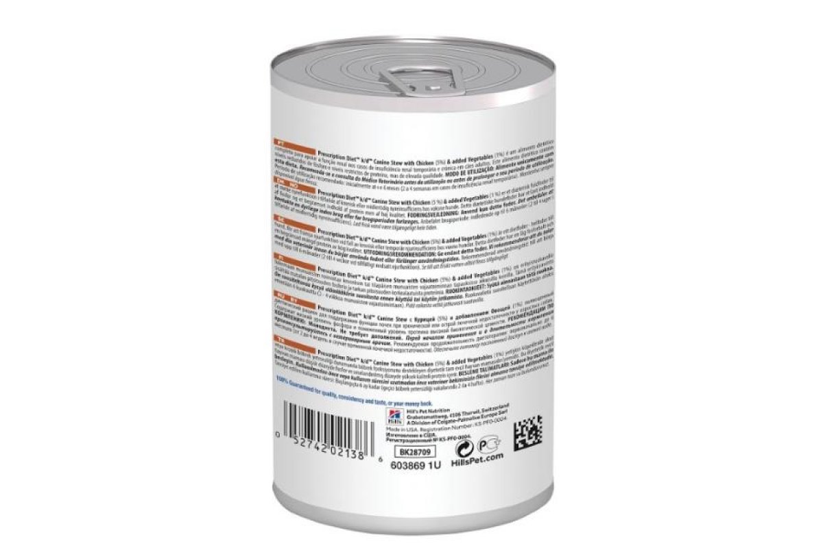Консервы для собак Рацион Prescription Diet™ k/d для собак - полноценный диетический рацион для поддержания функции почек при хронической или острой почечной недостаточности у взрослых собак. Содержит низкий уровень фосфора и пониженный уровень протеина высокой биологической ценности.