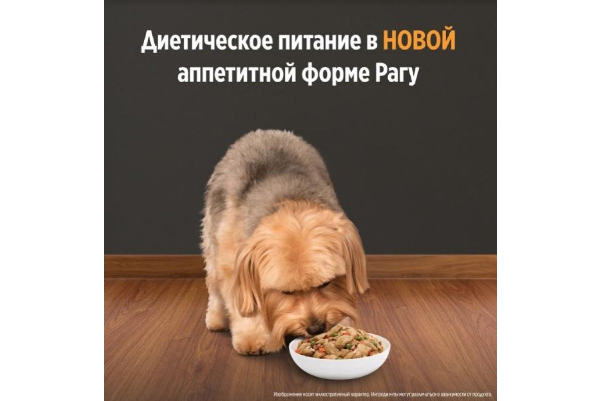 Бережно приготовленные аппетитные кусочки Рагу Prescription Diet™ с курицей с добавлением овощей.