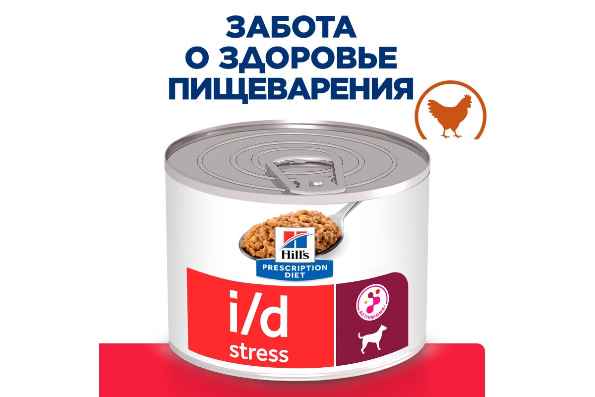 Описание Hill's Prescription Diet i/d Stress Mini Влажный диетический корм для собак мелких пород (консервы) при расстройствах пищеварения, курица, 200г.