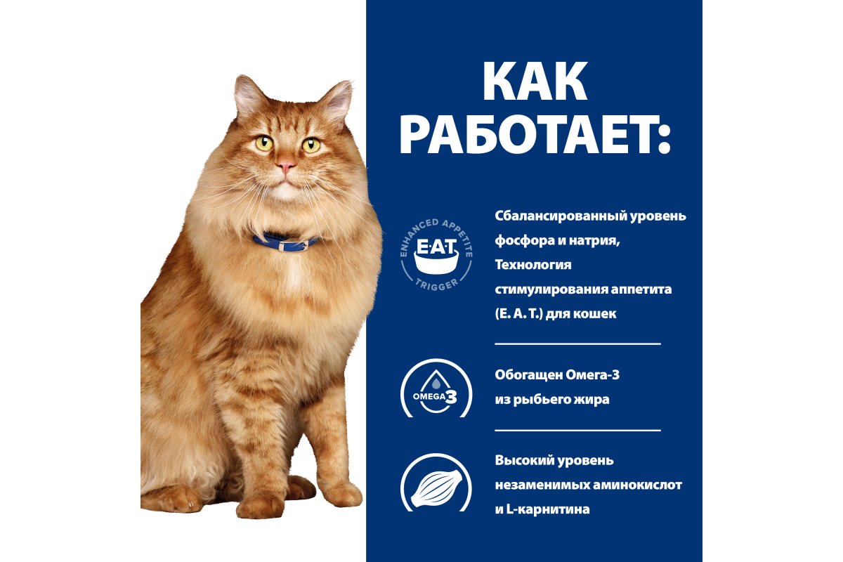 ● Помогает поддержать жизненно важную функцию почек, повышает аппетит и увеличивает количество потребляемой пищи с помощью технологии восстановления аппетита (E. A. T.)