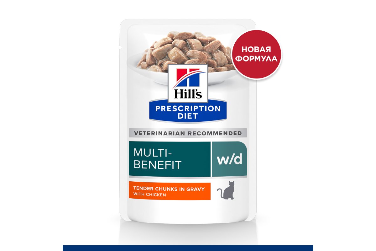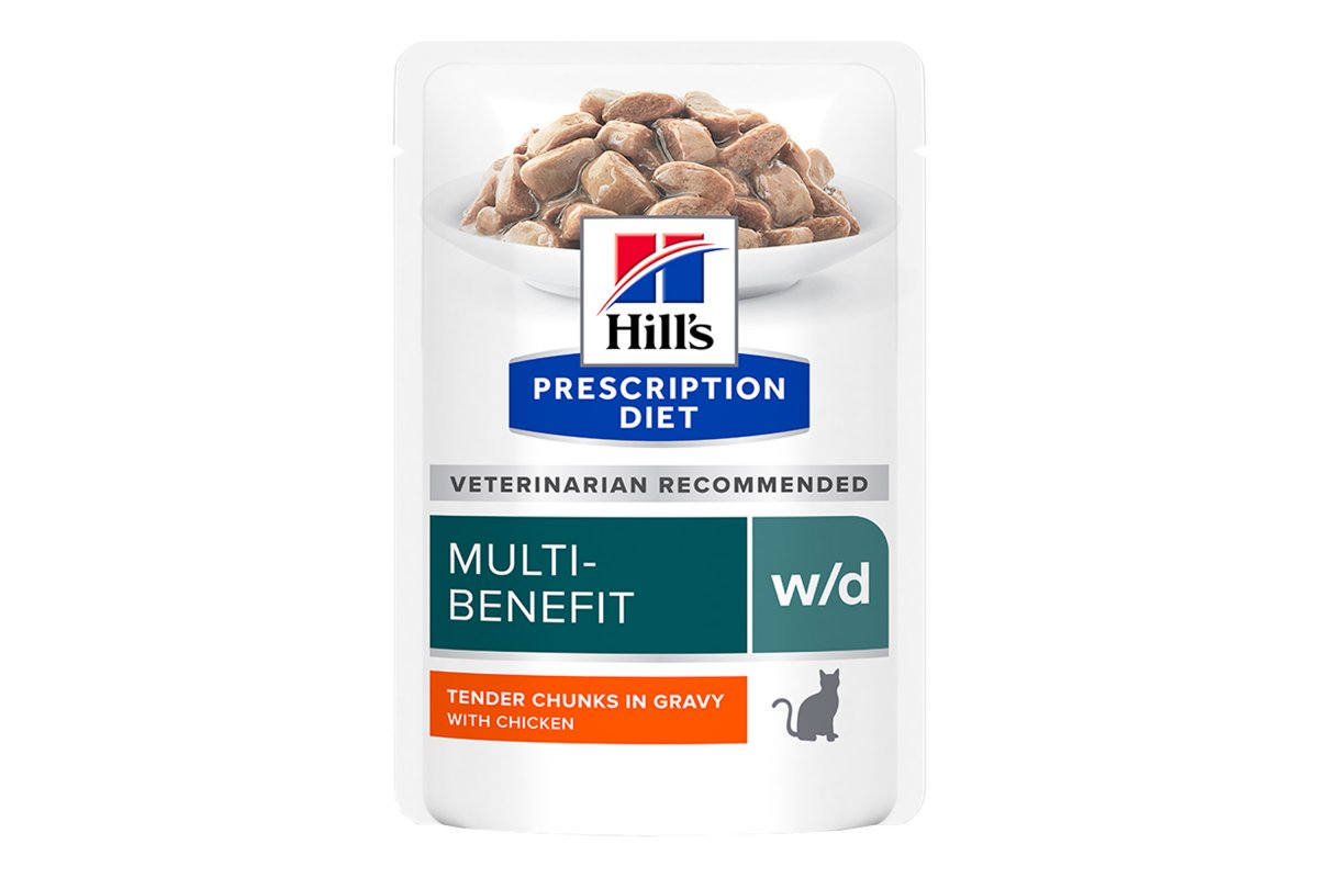 Описание Hill's Prescription Diet w/d влажный корм для кошек, для поддержания веса и при сахарном диабете (курица), 85г.