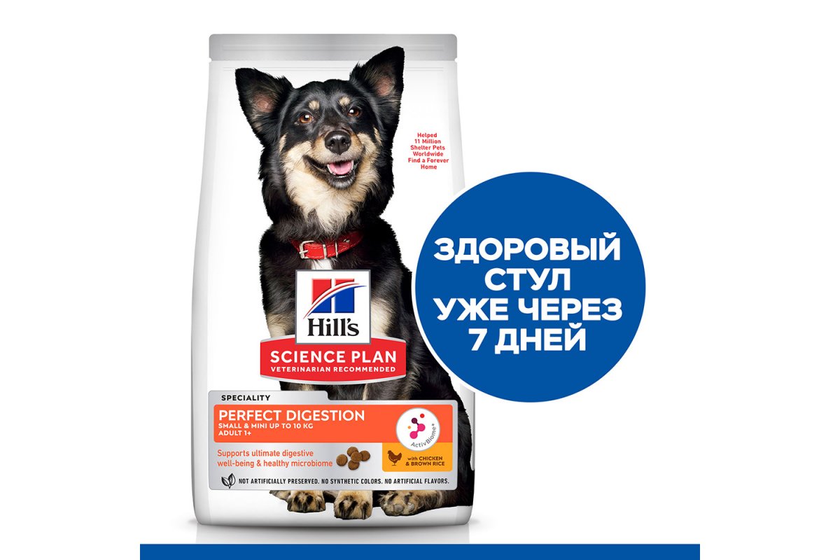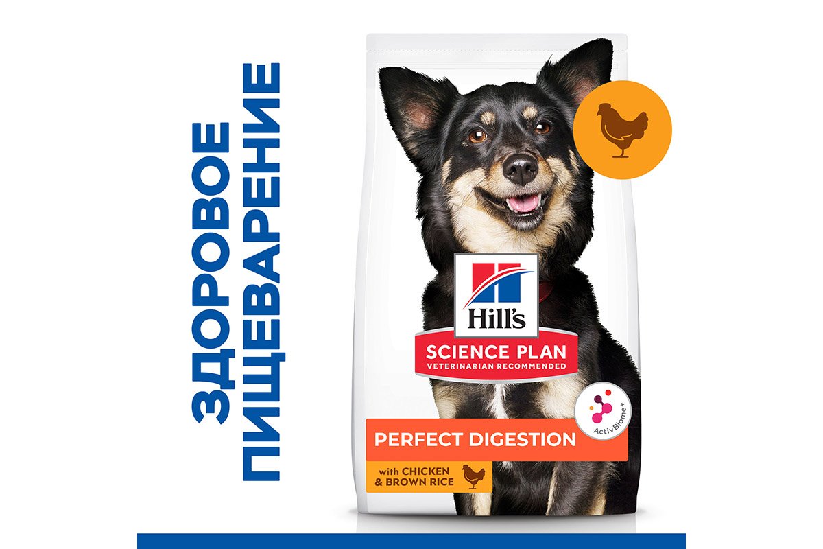 Сухой корм Hill's Science Plan Perfect Digestion для взрослых мелких пород с курицей и коричневым рисом можно купить в интернет-магазине зоотоваров Дай лапу.