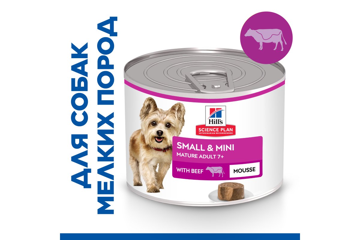 Описание Hill's Science Plan Small&Mini Консервы для пожилых собак мелких пород, с говядиной, 200г.