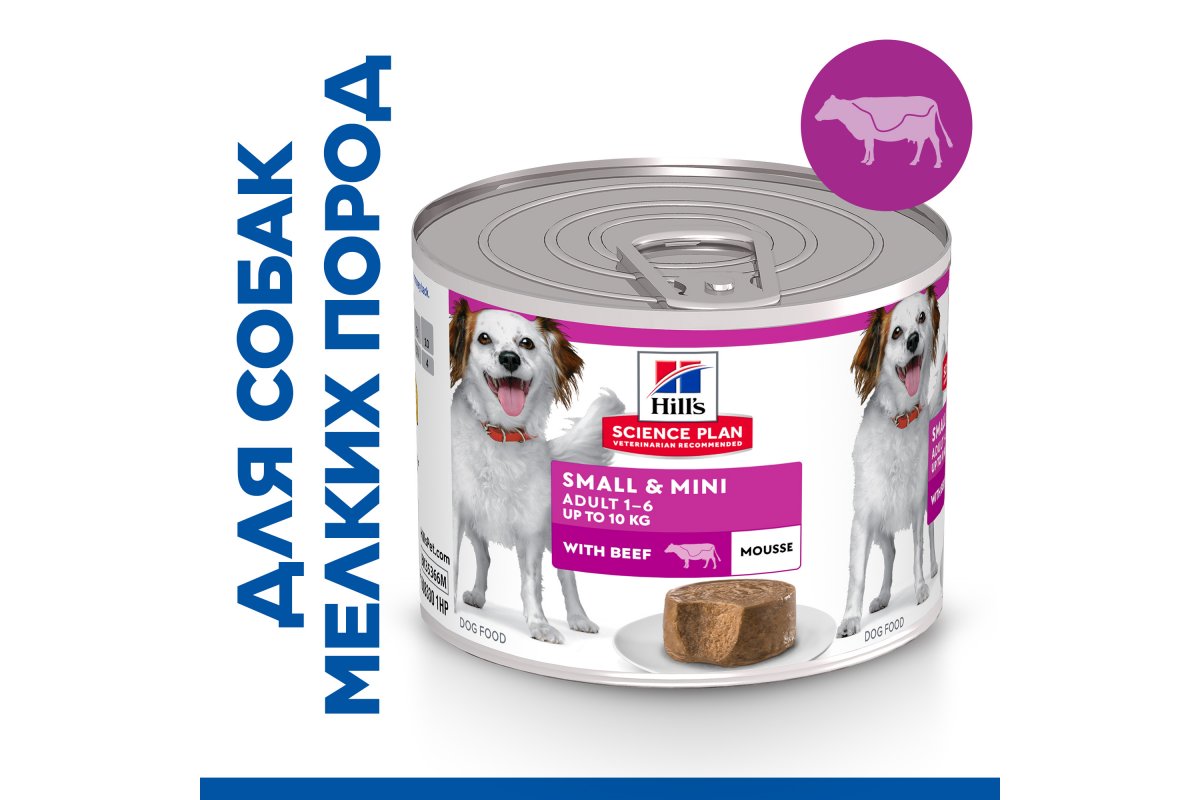 Hill's Science Plan Small&Mini Влажный корм (консервы) для взрослых собак мелких пород, с говядиной, 200г