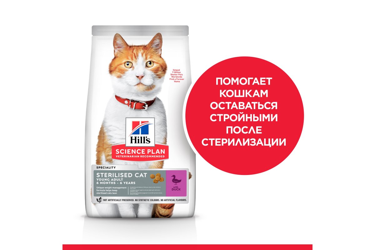 Сухой корм Hill's Science Plan Sterilised Cat для кошек и котят с уткой можно купить в интернет-магазине зоотоваров Дай лапу.