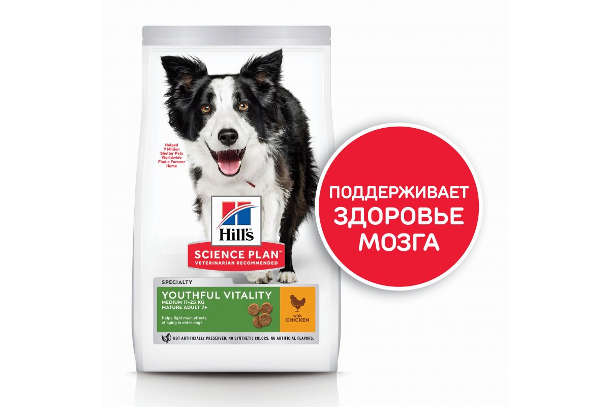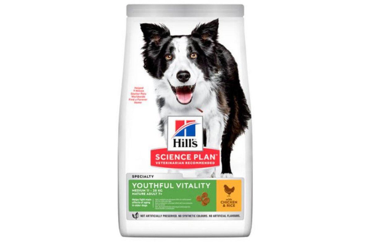 Сухой корм Hill's Science Plan Youthful Vitality для средних пород старше 7 лет (курица, рис) можно купить в интернет-магазине зоотоваров Дай лапу.