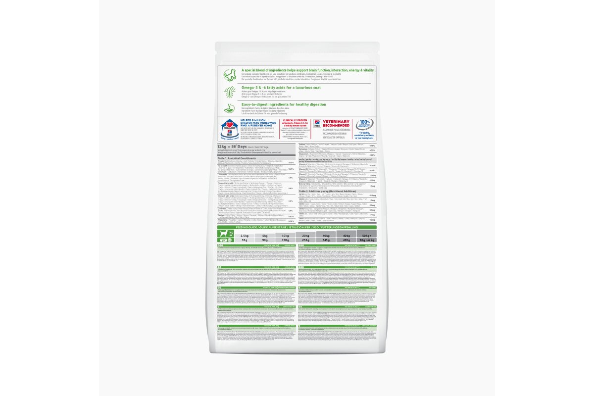 Сухой корм Hill's Science Plan Youthful Vitality для средних пород старше 7 лет (курица, рис) разработан с применением передовых технологий науки о питании, рацион, помогающий бороться с признаками старения вашей собаки в возрасте старше 7 лет. Новейший запатентованный рецепт с жирными кислотами и антиоксидантами включает витамины C + E, помогающие бороться с эффектами старения на клеточном уровне. Употребление корма способствует поддержанию активности функции головного мозга, энергии и активности питомца. Поддерживает здоровье иммунной и пищеварительной системы,  суставы и подвижность.