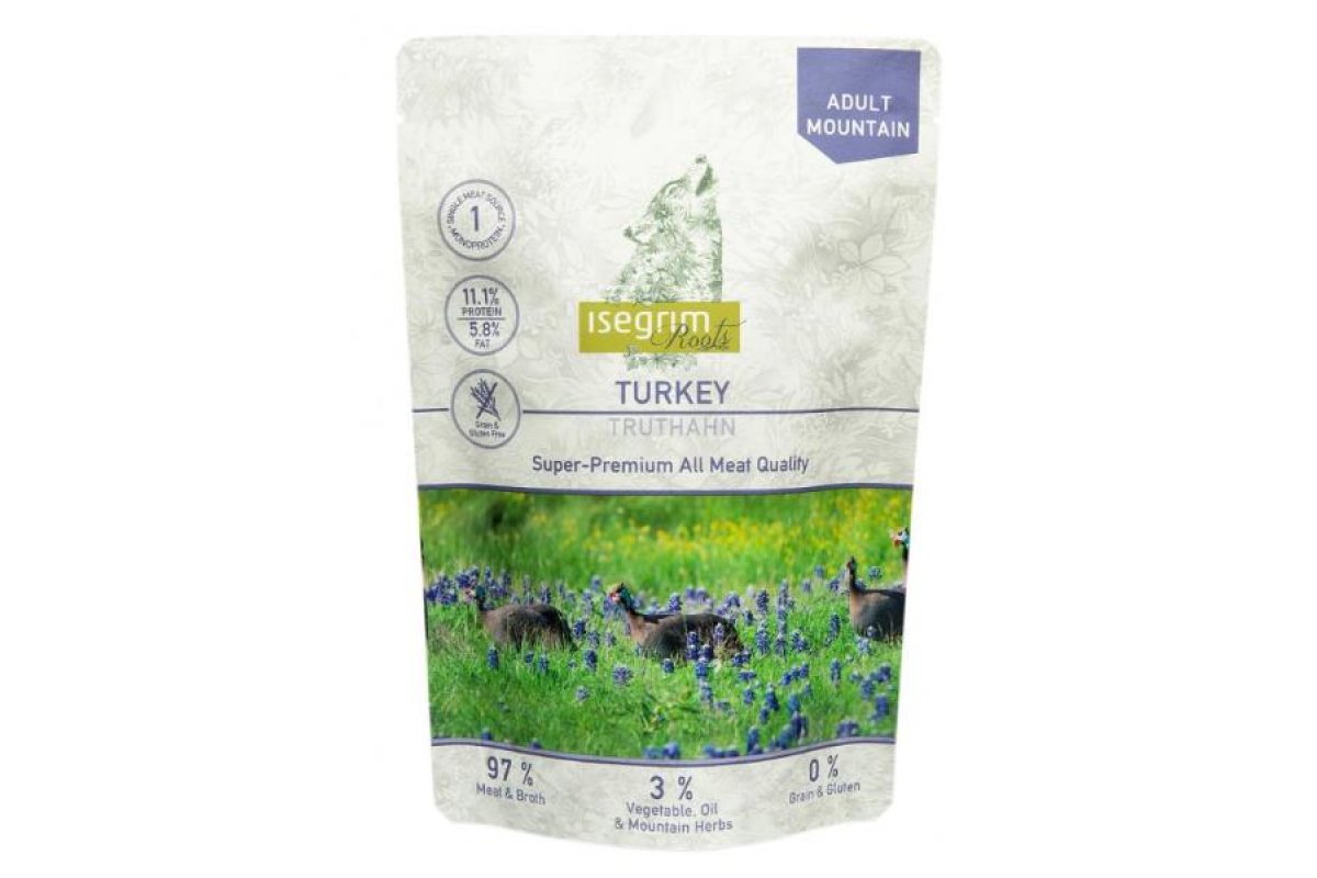 Isegrim Roots Adult Mountain (горная индейка) - это влажный корм с одним источником белка для взрослых собак всех пород с чувствительным пищеварением.