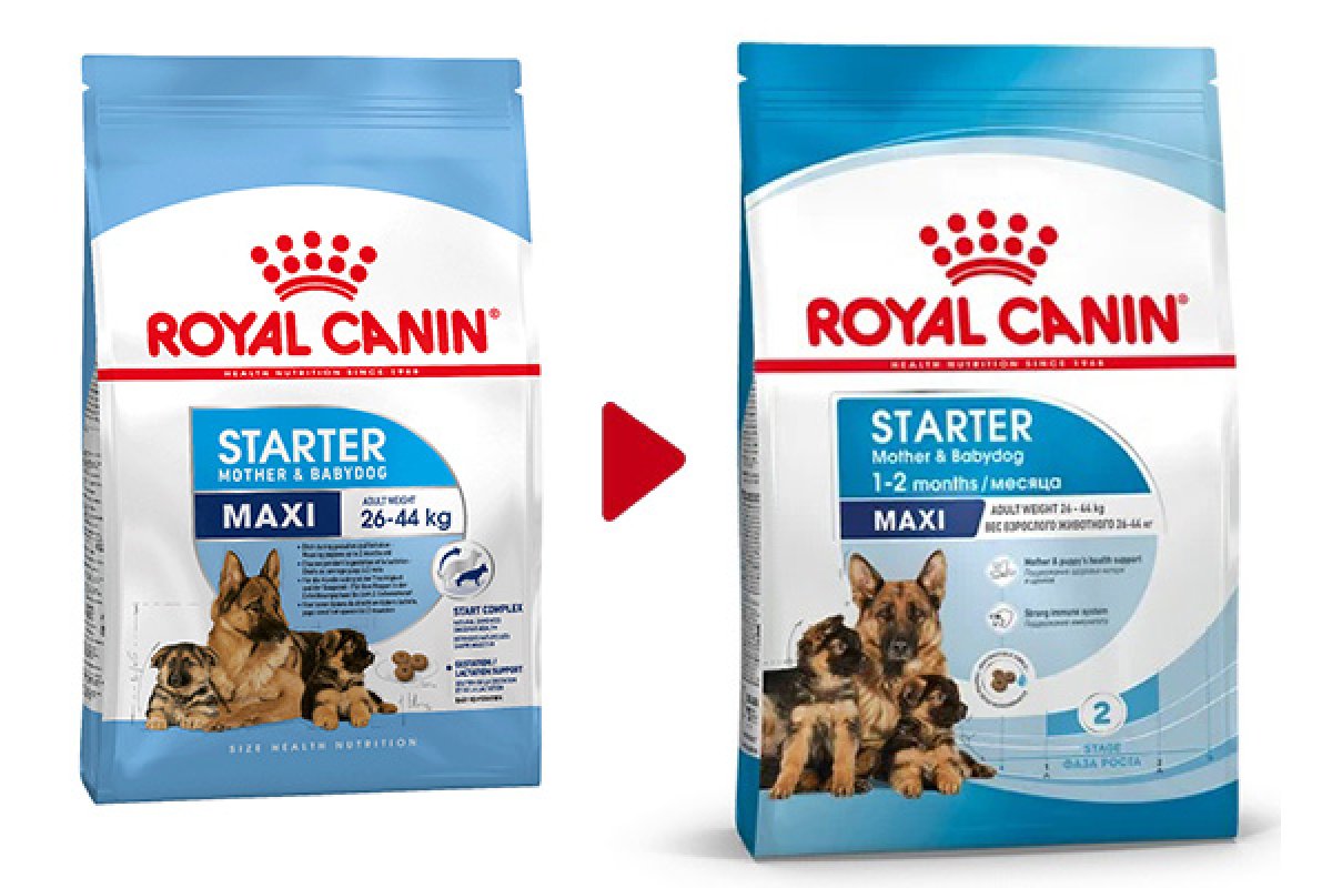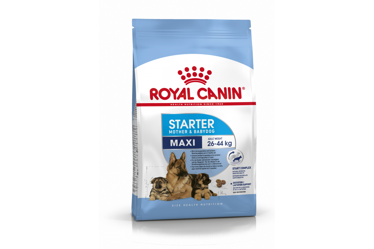 ROYAL CANIN® Maxi Starter Mother&Babydog создан специально для удовлетворения потребностей беременной или кормящей суки и ее потомства (крупными считаются собаки тех пород, взрослые представители которых весят от 26 до 44 кг).