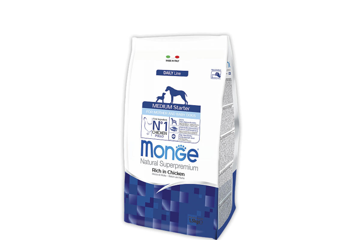 Сухой корм Monge Dog Daily Medium Starter (Курица, рис) можно купить в интернет-магазине зоотоваров Дай лапу.