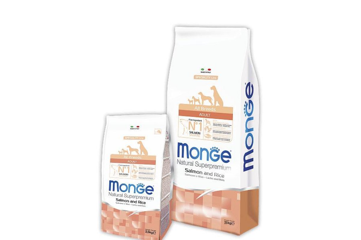 Сухой корм Monge Dog Speciality Adult All Breeds (Лосось, рис) можно купить в интернет-магазине зоотоваров Дай лапу.
