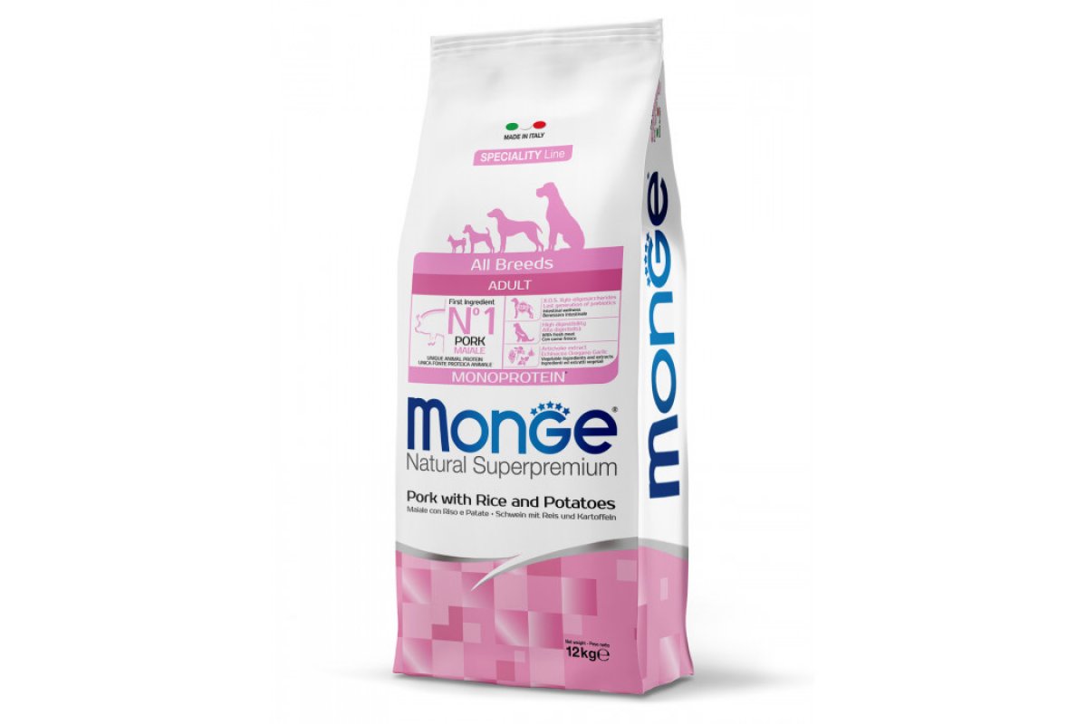 Monge Dog Speciality Adult All Breeds (Свинина) - это полноценный сбалансированный рацион для взрослых собак всех пород с особыми потребностями. В состав входят отборные гипоаллергенные источники белка животного происхождения, что позволяет легко исключить из рациона ингредиенты, вызывающие аллергию.
