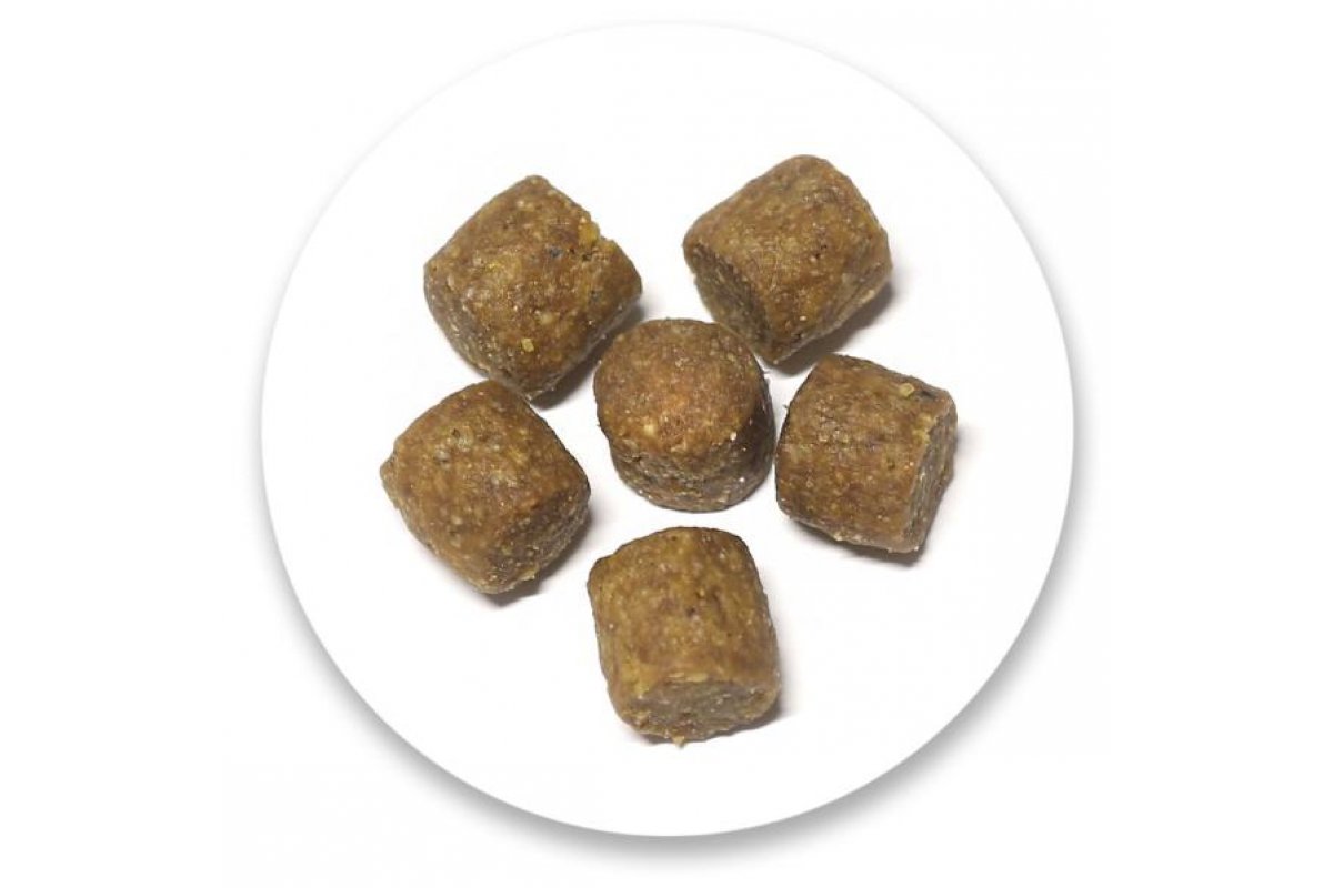 Состав: птичья мука, рис, кукуруза, птицы жир, кукурузный глютен, рыбная мука, семя льнa, жом сахарной свеклы, динамически микронизированный клиноптилолит (1%), горох, яичный порошок, гексаметафосфат натрия, экстракт юкки.