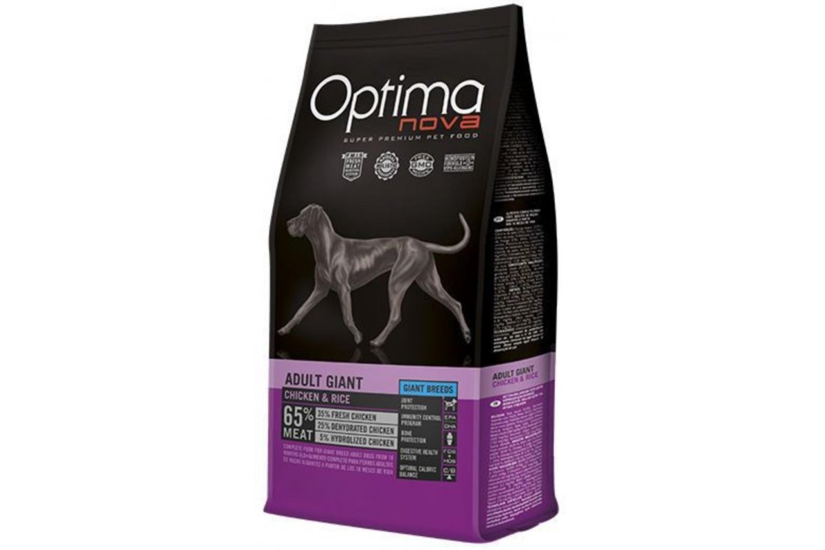 Сухой корм Optima Nova Adult Giant Chicken&Rice - это сбалансированный рацион для взрослых собак гигантских пород от 18 месяцев и весом более 45 кг.